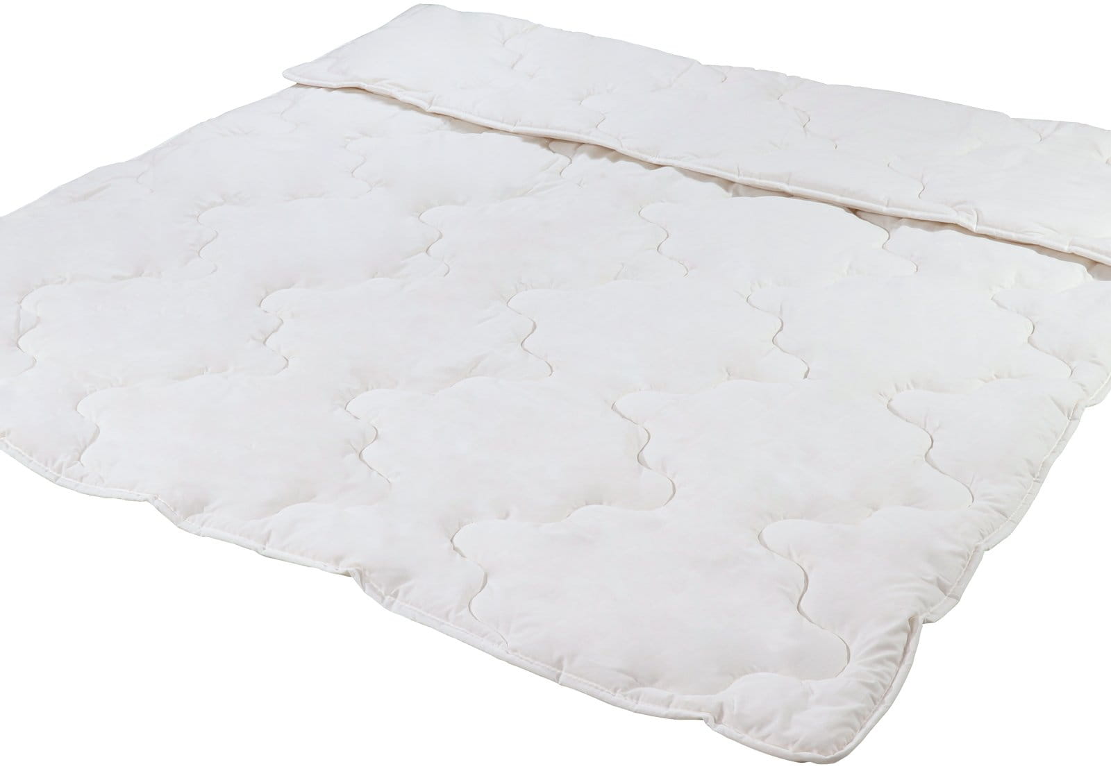 Ekologiczna kołdra pikowana, wypełniona miękką włókniną z wełny merynos.